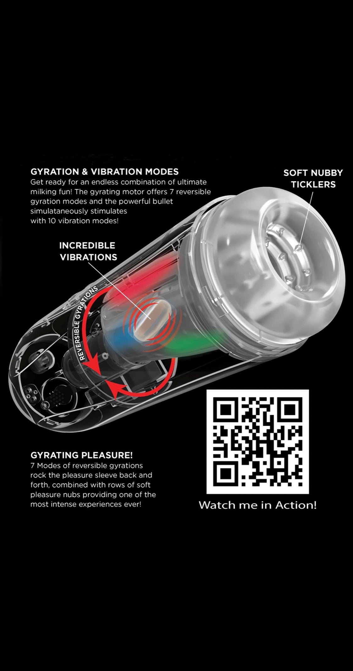 Introducing the first-of-its-kind milker masturbation technology designed to fully surround your shaft with vibrating, gyratory stimulation for the ultimate self-pleasure experience!