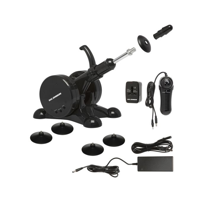 The Fuck Machine delivers superior power and endless deep pleasure. The strong machine's adjustable thruster arm can be angled to give you what you want in all your favorite positions, while four strong suction cups at the base keep it securely in place no matter how hard you play. For players who like it hard and fast, this versatile fucking machine offers variable speed to pound your holes at up to 195 strokes per minute. Created exclusively for use with attachments in Doc Johnson's patented Vac-U-Lock line, The Fuck Machine accommodates any Vac-U-Lock compatible attachment in your collection and available through Doc Johnson.